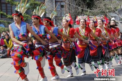 2月23日,24位来自台湾花莲的阿美族原住民载歌载舞,为福州市民展示台湾少数民族传统的节庆民俗和歌舞,共同庆祝元宵节.  当日,以“海峡同心声、闽台手足情”为主题的2013年两岸民俗交流联欢会在中国十大历史名街福州三坊七巷举行。