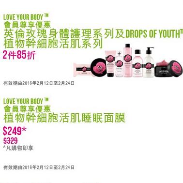 THE BODY SHOP  最新店内优惠(至16年2月24日)-数量有限,售完即止-条款及细则适用-优惠不可与其他优惠同时使用 (包括Love Your Body会员折扣优惠)-优惠只适用于香港及澳门分店 ( 东涌东荟城分店除外)-The Body Shop有权更改详情,恕不另行通知。...