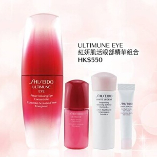 ULTIMUNE EYE红妍肌活眼部精华组合HK$550(总值HK$960)组合包括:ULTIMUNE EYE红妍肌活眼部精华15mlULTIMUNE红妍肌活精华10mlWHITE LUCENT亮白平衡滋润健肤水25mlWHITELUCENT抗黑眼圈美白眼霜5ml购物满HK$980 (优惠组合除外)可获赠全效无痕美粧修护组合...