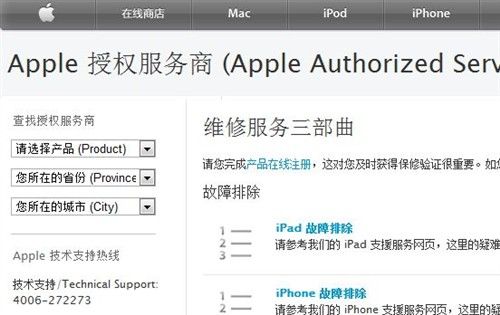 注1:iPhone/iPad越狱的朋友要注意了,在前往Apple授权服务商之前,建议您恢复至未越狱状态。Apple授权服务商有可能会拒绝为越狱用户提供售后服务。当然,现场刷个系统人家也干。至于收费嘛,你懂的....