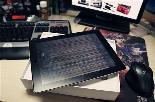老同学给媳妇买的iPad2屏幕花了,自己也不知道如何维修。顺丰快递直接寄到北京,拜托我给帮帮忙。
