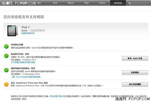 苹果官网查询结果,最初前90天内可使用电话技术支持服务