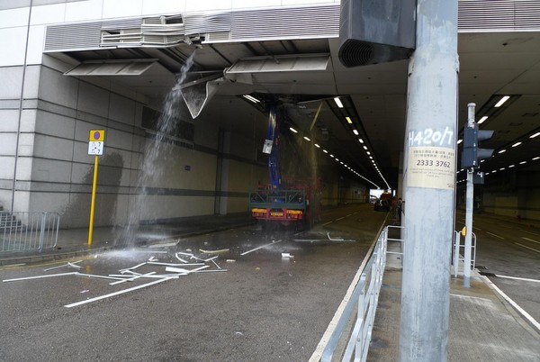 (偶遇一事故,这车太高了,把上面的水管捅漏了……)