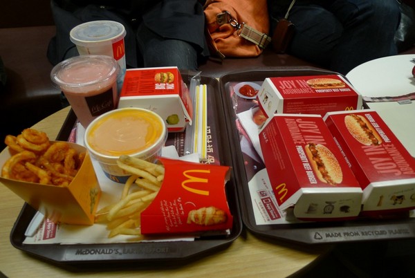 (香港的第一顿饭:麦当劳,那个圆圆盒子装的就是南瓜粥)