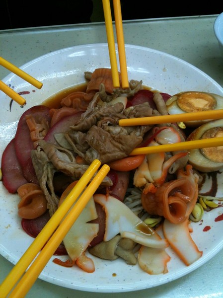 回到旺角,于老师要给她妹妹买相机,选相机的时候给她妹妹打电话,她妹妹问她这都几点了,有时差么?我们一看时间,晚上十点半了……这个时间在家的时候已经呼猪头了,在香港,我们却仍在逛着……于老师还要买ipad,我和石头实在支撑不住,就提前回了酒店。芒果啊,寿司啊~~~寿司是终于吃到了,觉得很开心。芒果是真的味道太好了,熟透的芒果,在塑料袋里被巧克力压了压,味道更浓!于老师来电话问吃饭的事情,我说你们赶紧回来吃寿司和芒果吧,那个时候我已经飘飘仙了,什么下雨啊,什么累啊困啊的,都是浮云!四个人把现吃的食物吃了之后,到楼下吃夜宵。我们要看看这个凌晨2点钟最热闹的街,吃吃近在咫尺的旺角美食。