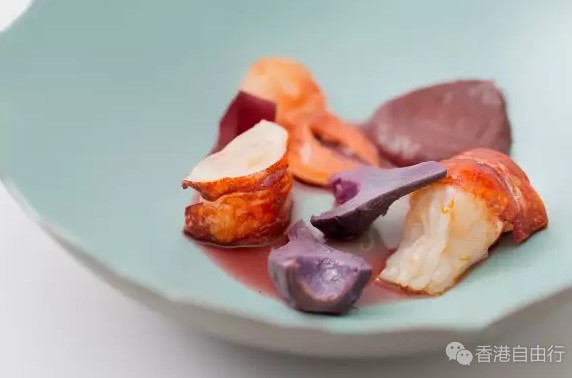 「蓝龙虾配古种萝卜、朝鲜蓟及接骨木莓果醋」
