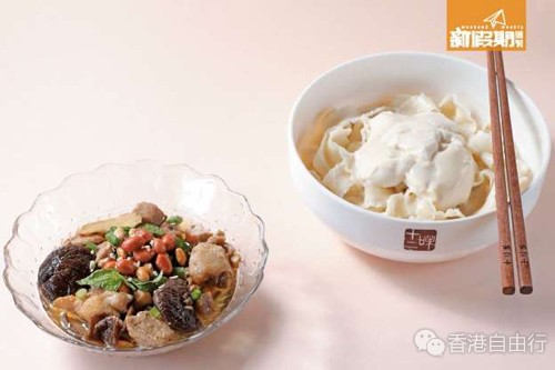 这间粉面台有别于一般面店,因店内全部食品均是自家出品,无味精无添加剂。店内的鱼蛋每日用人手新鲜即打,连炸酱、辣椒都是自已调配。除了招牌菜外,牛沙瓜 捞面 也很吸引!牛沙瓜即是牛的第四个胃,卖相虽像猪肚,但比猪肚爽口,而且牛杂十分入味。而 捞面 附送的鱼汤味道清香,面可配蚝油或牛腩汁,而份量比汤面多。