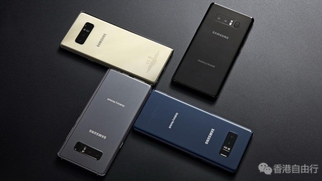Note 8备有黑、蓝、灰、金4色选择。