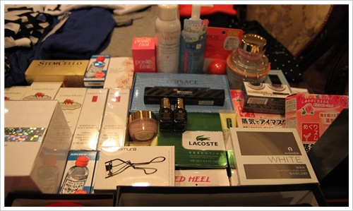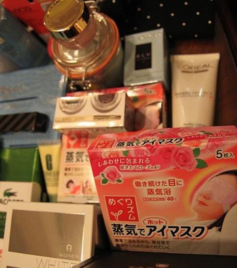 花王玫瑰蒸汽眼膜,(卓悦)我之前一直以为有消浮肿,改善黑眼圈功效。。。但是导购小姐明明确确告诉我这个就只有助睡眠的能力。。!!!大家不要跟我一起走进误区喔~~~不过使用后的感受是,眼罩的确会发热。。但是是温温的。。。可能杭州太冷了。。听说夏天使用会觉得很热喔~~L'oreal洗面奶,(龙城大药房)正好家里的用完了,就入了这个,觉得清洁能力不错哦~~~价格是国内专柜一半的样子~~是不是很划算哈哈!BVLGARI男香迷你,(卓悦)买回家试试这个味道OK不OK。。。。