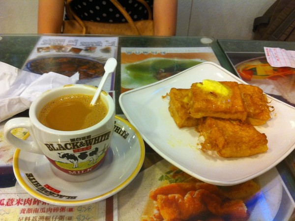 虽然广东和香港的饮食习惯比较相像,但是风味还是不一样的。猪扒真的很难吃,咖喱的味道很奇怪,猪扒的肉很硬!而且没有青菜配的。但是例汤还是比较实惠的,没有很重的味精味,里面的料也很足。港市奶茶和我平时喝的不大一样,但是就能明显尝到有奶味和茶味。