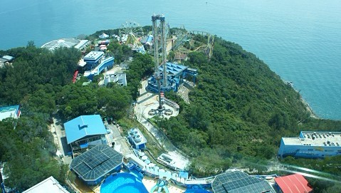 在海洋公园坐缆车上山
