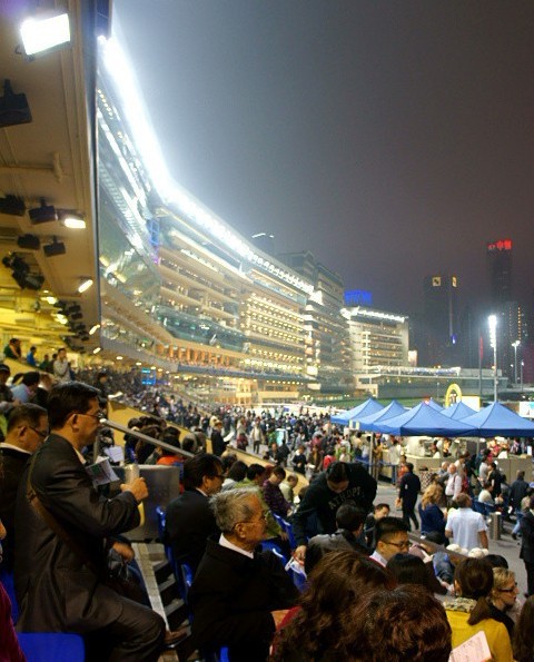 到中环之后,前往金紫荆广 场一通照相,然后直奔铜锣湾,在太兴吃完晚饭,到跑马地马场看赛马!都是第一次去,本着积极参与的精神在第三场猜了次独赢……结果没有一个人猜中,赌马还是很刺激的!还有各式帅哥,美女看!可是父母累了,看完一场就回酒店休息了!