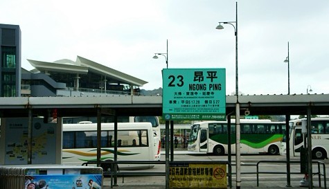 从柯士甸坐地铁到东涌,然后B口出到巴士中心,因为缆车检修,要坐23路车上山;23路的票价是平时17.2港币,假日27港币……如果可以尽量坐在前排,因为…巴士在山路上转来转去,速度还相当快,实在太刺激了!