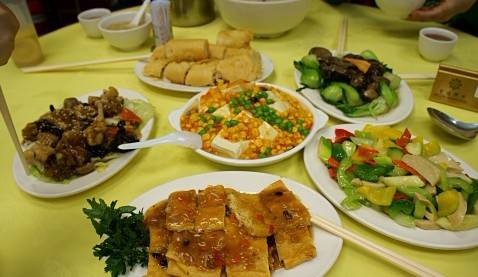 之后在宝莲禅寺的素斋吃饭,买的是65港币每位的,这顿饭父母吃的都比较高兴。