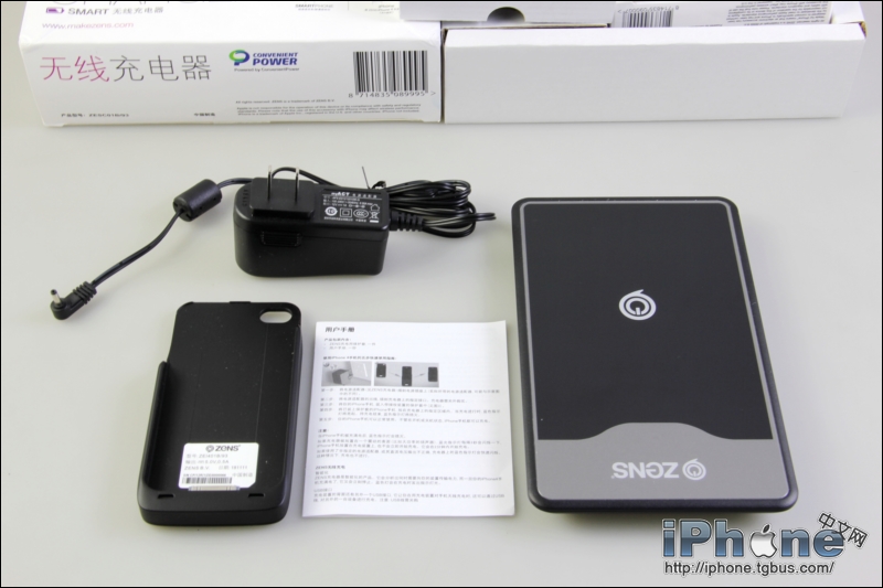 与其它无线充电设备原理一样,ZENS为iPhone4/4S提供了无线充电保护套(电磁接收端)与无线充电板(电磁发送端),这两者缺一不可、相互依存。由于ZENS无线充电器采用全球通用Qi标准,所以厂商今后也将开发其它手机专用的无线充电保护套,使得多款手机可以共用一块充电板。