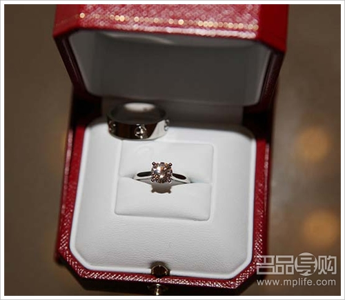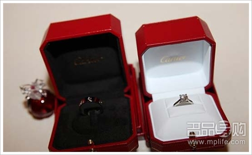我们的婚戒。边上的香水是cartier送的,瓶子很漂亮。