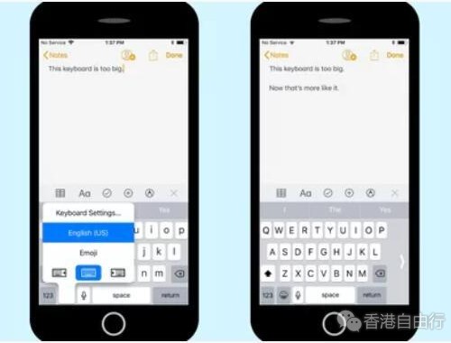 iPhone 8和8 Plus都是尺寸相对较大的手机,单手打字不是件容易的事,特别是手指触摸不到显示屏的其他边。iOS 11中的一项新特性把键盘压缩到屏幕的一边,较好地解决了这一问题。触摸并按住表情符号图标,选择下方其他键盘列表中左边或右边的图标,就可以进入单手输入模式了。点触键盘的空白一边,就可以使键盘恢复到正常宽度。