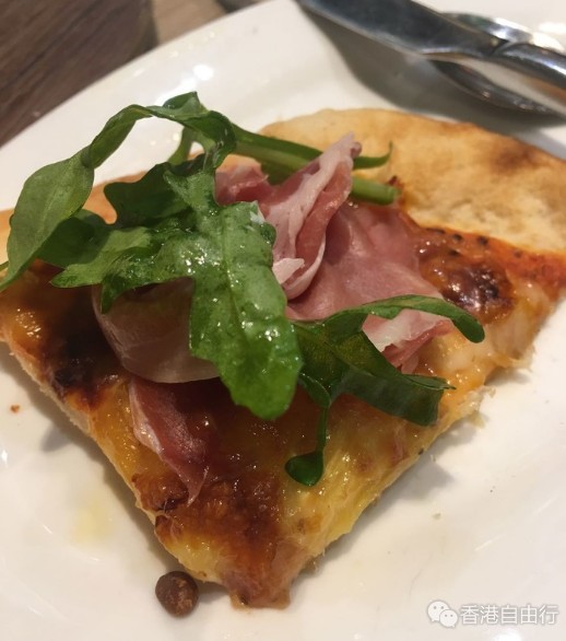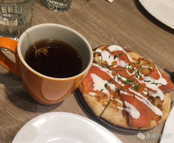 套餐68港币一人,一只6寸披萨,一杯茶或咖啡。我选了三文鱼和鱼子,老公选了意大利火腿,用料都是不错的。
