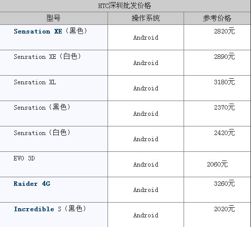 作为国际一线厂商,HTC每年都会推出几款热销机型,而且它的产品既有高端主流机,也有中低端入门机,给用户提供了更多的选择。从下面的报价我们可以看出,最近HTC的价格也呈现走低的趋势,只不过这种走低是相对于之前涨价风潮来说的。像Sensation XL虽然在降价,但是并未达到年初的最低值,其中还是存在不小的水分。而EVO 3D和Sensation都已经降至一个极低的价位,相比之前的底价还要略低一些,这个时候购买这两款机器还是比较划算的。