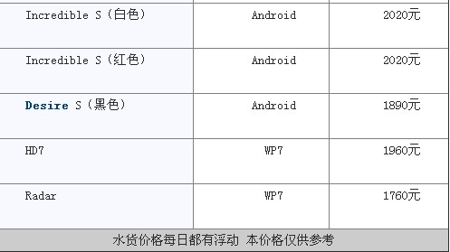 HTC主流机型价格