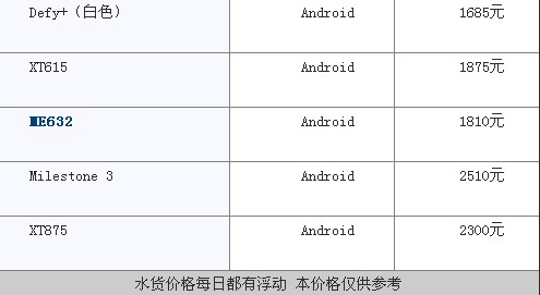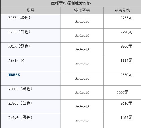摩托罗拉主流机型价格