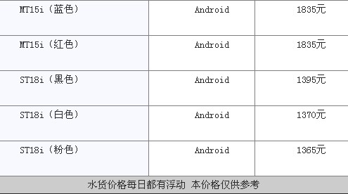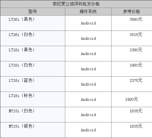 索尼爱立信主流机型价格