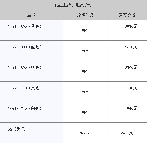 近两年,诺基亚在智能手机方面表现平平,市场份额也一步步被对手蚕食,面对这样的境况诺基亚也在寻求改变。先是去年大力推广MeeGo系统新机N9,但市场反响平平,随后其又与微软合作推出了采用WP7系统的Lumia系列机型,全新的Mango系统还是为其赢得了不少用户。从下面的报价我们可以看出,无论是Lumia系列机型还是N9,价格都已经十分稳定,短时间内难有大的变动。