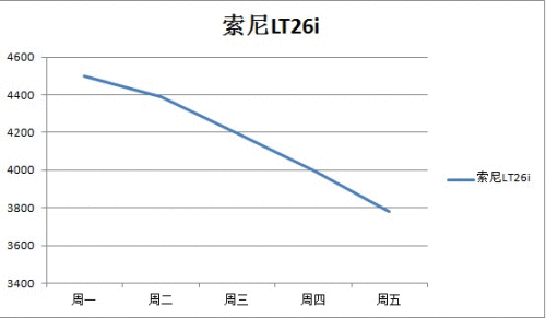 作为索尼首发的宠儿,索尼LT26i亮相后得到了众多的关注,其机身一体的制式和靓丽的外观得到了人们的喜爱,这也是索尼首款双核1.5GHz主频的强机,其机身的整洁一体很是美观,入手感觉很好,但是这部手机在短短一周内一直走下坡路,直到周五降价的趋势丝毫不减,如果照这样继续下降,那么小编预计,这部手机很快会到3500内,如果喜欢的朋友不妨考虑购买。