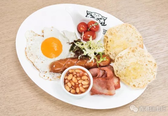 太阳蛋、香肠、烟肉、焗豆、番茄、英式松饼