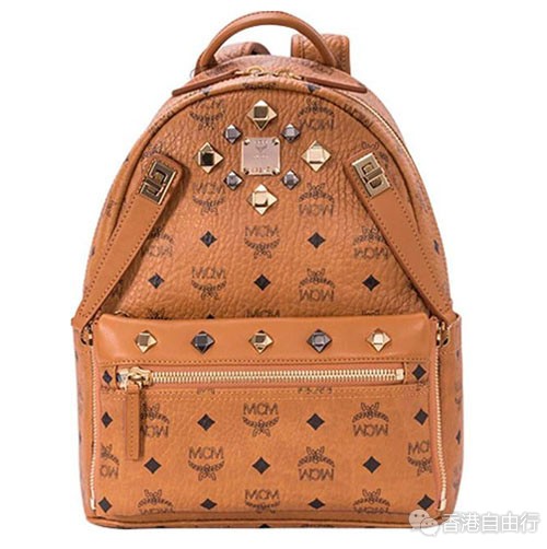▲MCM经典LOGO铆钉背包(棕色)