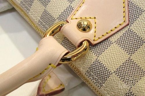 其次是真皮肩带,LV肩带即使是斜背包,也是一整条下来全无接缝,这点对皮质要求高,皮的损耗极大。一般仿品很难做到,再有就是手挽包的把手。真品的把手做得圆润光滑,丝毫没有皱折。而稍差的仿品往往转折处有皱。但一般超A以上大多已经可以做到没皱了。有人说可以从颜色上看。这点是最误导的。因为LV专卖同款包不同时期也不可能做到配皮完全一样色的。此久了氧化程度不同,颜色也不尽相同。要知道这种皮质,即使不用单放久了,颜色也会变的。比如经典枕头包,似乎以前出的,很多买来手把处就是密色了。而近期买的大多是很白的颜色。