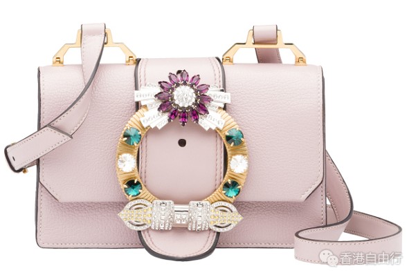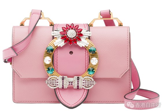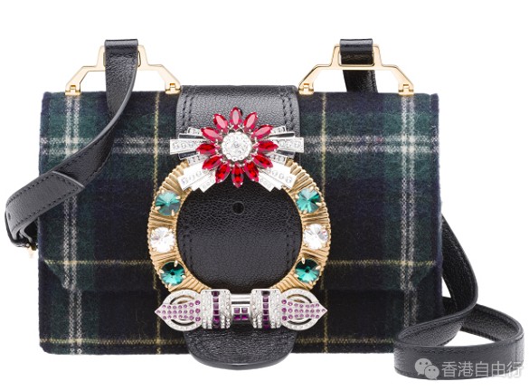 选用顶级Madras皮革与柔软小牛皮缝制而成的MiuLady手袋,打破传统配色而采用不拘一格的明艳色彩搭配,玩味十足。常见于皮带上的超大黄铜搭扣被置于袋身经典翻盖上,将巴洛克与西部风格融汇其中,而手工镶嵌于搭扣之上的艳丽宝石更为手袋添彩。结合优雅轮廓及华丽的装饰细节,MiuLady手袋完美诠释了品牌那份叛逆破格又不失女性化的独特气质。