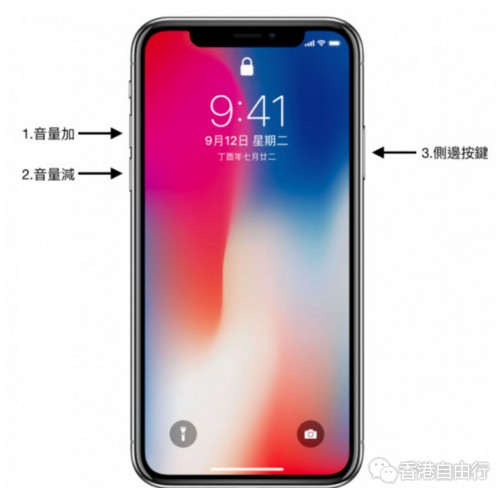 iPhone X跟iPhone 8的强制关机方式其实差不多,先快速地按一下「音量加」再放开,快速地按一下「音量减」再放开,最后长按「侧边按键」直到iPhone重新开机出现Apple的Logo。