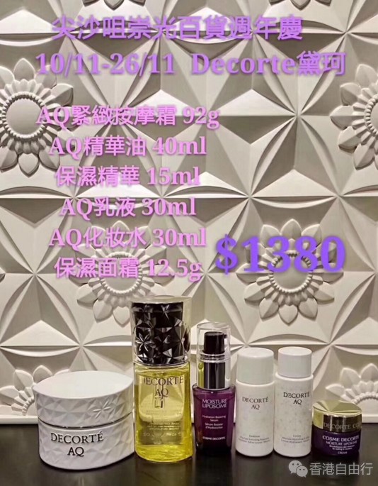 尖沙咀店 COSME DECORTE黛珂优惠套装详细及价格,更多优惠套装请往下看: