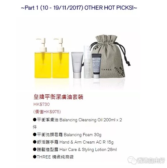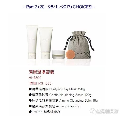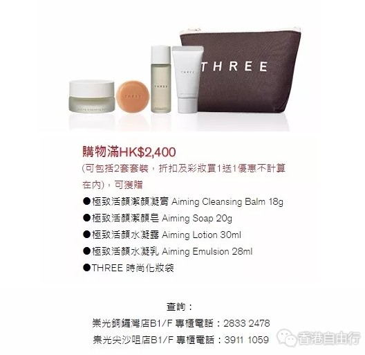 于11月10日至26日举行的崇光感谢周年庆SOGO Thankful week,THREE为你呈现多项优惠,,绝对是各位THREE Lovers年尾奖励自己、各位THREE Lovers不用去日本变可轻松选购心头好的最佳时机。