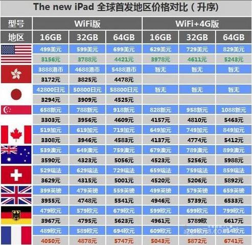 而只有中国香港是完全没有税的,消费者只需要3172元人民币就能拿到新iPad,还是相当具有吸引力的。而在其中我们也发现,法国需要4050元人民币才能买到新iPad,比香港贵出了仅一千元,当属最坑爹,相信市面上是绝对不会出现法国版水货的。