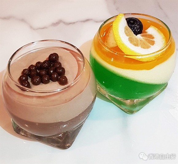 最后轮到两款杯仔甜品,分别有朱古力慕丝及芒果慕丝蜜瓜啫喱。两款慕丝都非常软滑,入口不会有腻滞的感觉,前者朱古力味非常浓郁,而後者吃下去会感受到香浓的芒果味,配上垫底的蜜瓜啫喱,甜美迷人,相信大人同细路食完都会赞好食。