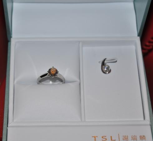 先上大闪闪吧,请大伙儿原谅发帖顺序跟标题有点不太一样。购于尖沙咀九龙公园下面的谢瑞麟,一克拉整,VVS,I色,合人民币8W左右。旁边也是购于他家的项链坠,挺精致的,适合平时穿黑色衣服戴。。。。。