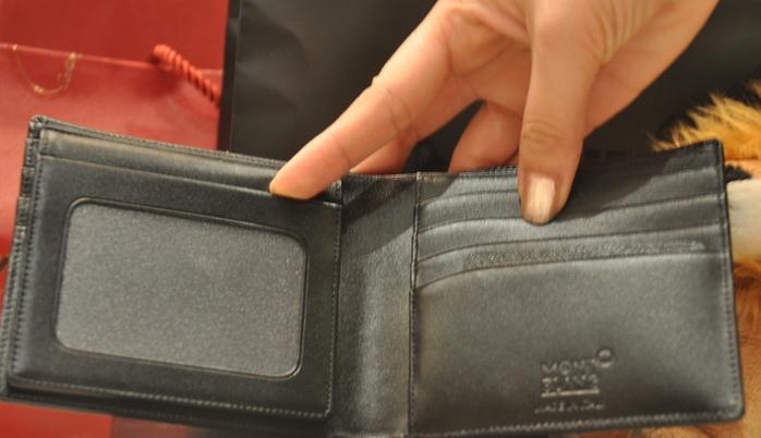 万宝龙钱包,N久前给 他买的LV老花经典款的,他老人家嫌高调,愣是跟那儿封杀了好长时间,自己又跑去买了个黑色的啥LOGO也没有的,我说那您倒是买别的低调的小牌子啊,他还嫌皮质没有大牌子的好。。。。。。男银有时候真难伺候