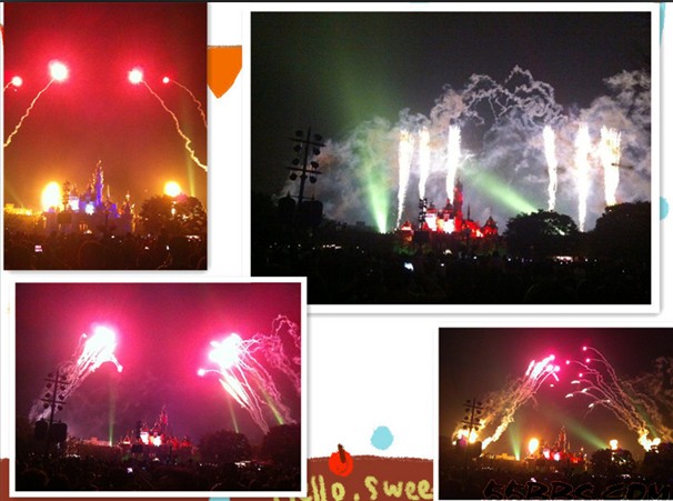 晚上的烟火,看点在于这个烟火是以城堡作为背景的,才显得很梦幻很美丽.