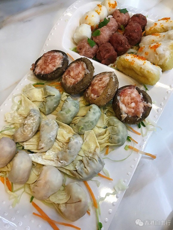 主菜其实已经好丰富,有手工饺类、手工云吞、同手工丸类,最特别既系手工猪肉酿鲜菇同手工墨鱼酿豆卜。将传统既火锅食材结合,变成创新既配料,口感层次更丰富。其实这个套餐已经够饱,可以点些蔬菜平衡下,推介时令的豆苗同蕃薯苗;建议食完不够饱先再点其他火锅配料。