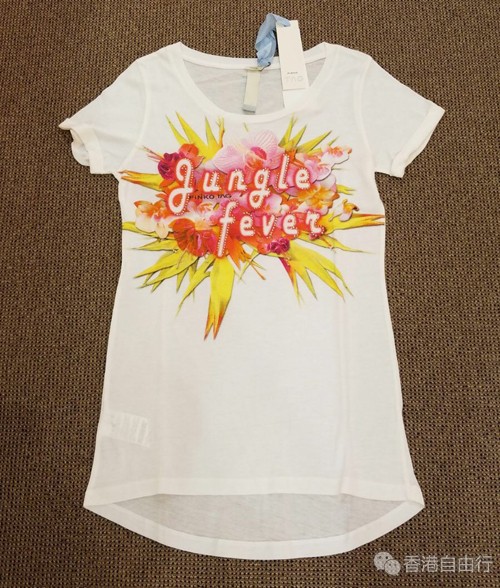 ▲PINKO花束图案女士短袖T恤(黑色)