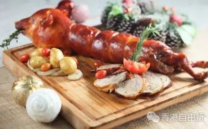 在平安夜及圣诞节晚上,餐厅更特别推出矜贵美馔烤大虾及鲍鱼焖花菇,其他传统节日佳肴有传统圣诞火鸡、烧猪配意大利饭、烤牛肋骨、香烤羊架、烧肉眼牛扒等。