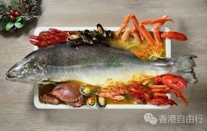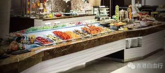 节庆自助餐除了不同品种的新鲜时令即开生蚝外,自助餐桌上还有琳琅满目的冰镇海鲜,包括大虾、青口、面包蟹、长脚蟹、翡翠螺、小龙虾等。此外,于平安夜、圣诞节及除夕的自助晚餐更有原条鲑鱼及阿拉斯加皇帝蟹供应,令人垂涎欲滴。