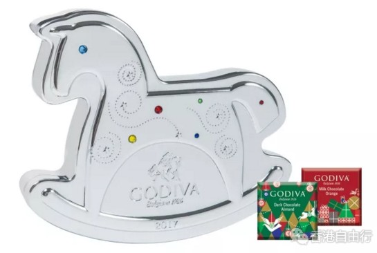 精巧的银色木马造型礼盒内藏8 片GODIVA 片装巧克力。