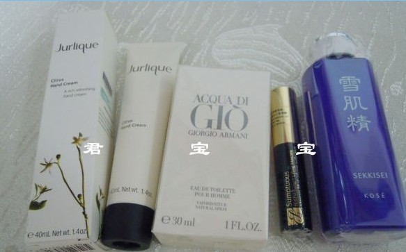 Jurlique柑橘手霜、Armani GIO男香、EL睫毛膏、kose雪水