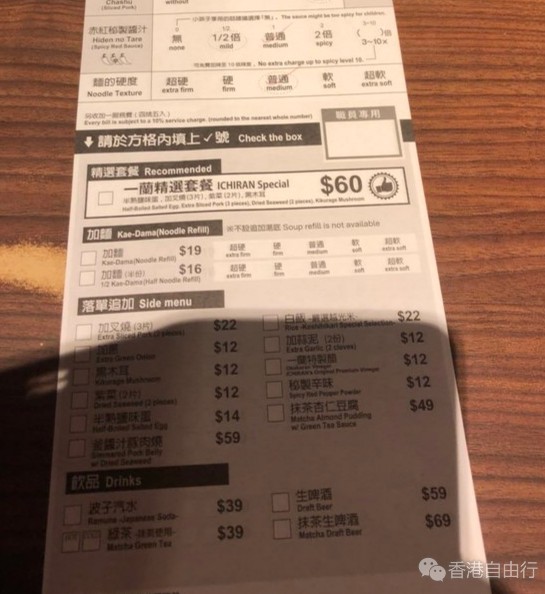 一兰拉面,十分幸运,排队不上两分钟,确实名不虚传,人生首次吃面连汤喝完的,吃完还带了两盒回家送朋友,198HKD/盒