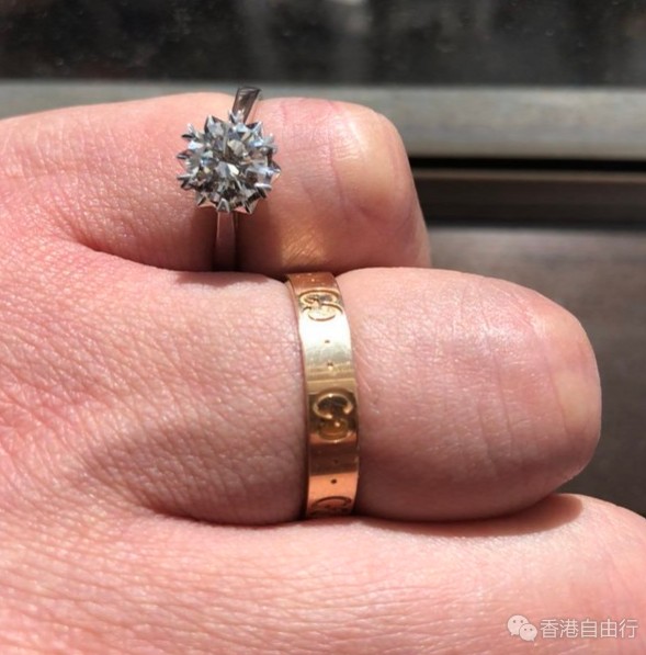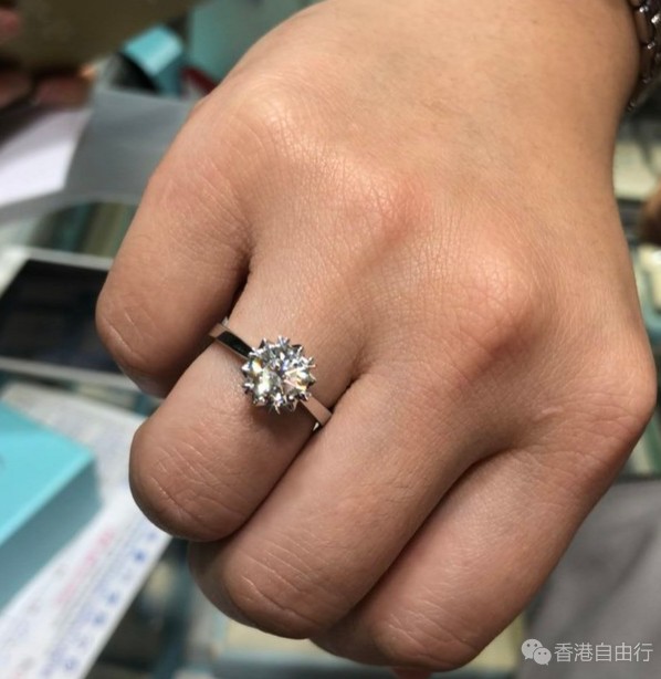 第二日,根据需求不厌其烦地前前后后拿了至少10来个钻来给我们挑,最后敲定一枚H色,1.18克拉,vvs2,3EX,none的,免费送戒托,媳妇很满意
