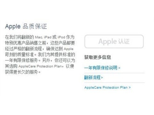除了魅族以外,作为国际知名厂商的苹果也在其网站销售由它自己翻新的产品,只不过它在国内销售的官方翻新机是iPod、Mac、iPad这三款产品,并不包含iPhone。苹果的官方翻新产品与魅族一样,同样采用了全新的原装外壳,包装、配件也与全新机一样,同时它的产品也会有官方翻新的标示。