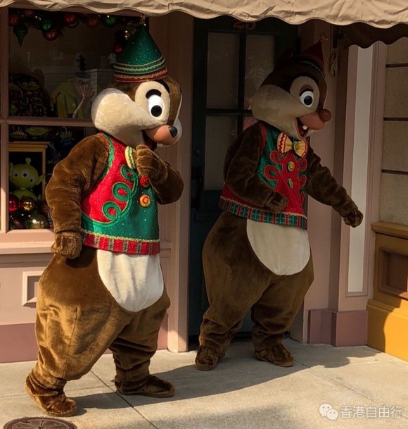 看完剧就去做了小火车,总共就两站大门口一站,园内一站,我们就坐到大门口,逛了逛商店买了一大包走人去了东荟城。可惜没有和chip'n'dale人物合影,入园的时候看到他们也排队了,但是预估了下时间要一小时,想着下午还有去奥特莱斯拍了一会就放弃了,远远的给他们拍了照。真是好可爱呢~相比中庭米奇米妮的队伍立排可拍,小松鼠简直是人气明星。